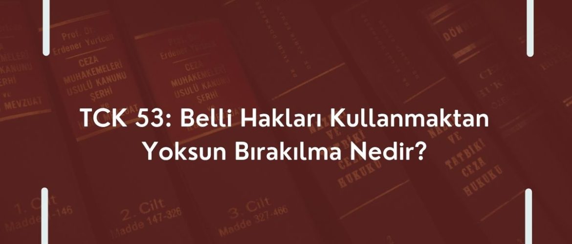 Ceza hukuku yalnızca bir kişinin hapis cezasıyla cezalandırılmasıyla sınırlı değildir. Bazı suçlar, yalnızca özgürlüğü değil, toplumsal hayattaki bazı temel hakları da etkiler. İşte bu noktada Türk Ceza Kanunu’nun 53. maddesi, İşte tam bu noktada, “belli hakları kullanmaktan yoksun bırakılma” yaptırımı gündeme gelir. Türk Ceza Kanunu’nun 53. maddesi uyarınca bu yaptırım, suçun niteliği ve verilen cezanın şekline bağlı olarak kişinin bazı temel haklarını geçici ya da kalıcı şekilde kullanmasını engelleyebilir. Hangi Haklar Kapsam Dahilindedir? TCK madde 53’e göre, bir kişi mahkûm olduğu ceza