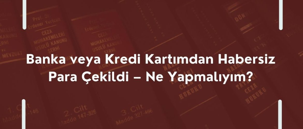 Hesabımdan Habersiz Para Çekildi – Ne Yapmalıyım?, Herhangi bir bilginiz, talimatınız ya da onayınız olmadan, banka hesabınızdan ya da kredi kartınızdan para çekilmişse, hukuki yollarla bu mağduriyetin giderilmesi mümkündür. Ancak sürecin sağlıklı ve hızlı ilerlemesi için bazı adımların doğru ve zamanında atılması gerekir. Öncelikle, fark ettiğiniz anda şüpheli işlemin derhal bankaya bildirilmesi, ardından Cumhuriyet Başsavcılığı’na suç duyurusunda bulunulması önem arz eder. Banka tarafına yapılacak başvuruda, işlemin size ait olmadığı detaylı bir şekilde açıklanmalı ve itiraz açık bir dille belirtilmelidir. 5464 sayılı Banka