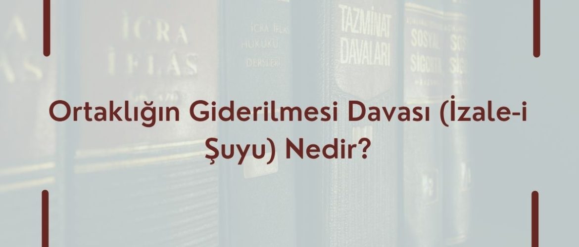 Türk Medeni Kanunu’nun 698. ve 699. maddelerinde düzenlenen ortaklığın giderilmesi davaları, uygulama kısmında “izale-i şuyu” davaları olarak isimlendirilmektedir. Bu dava, birden fazla kişi arasında ortak mülkiyete konu olan bir taşınır ya da taşınmazın, tarafların aralarında anlaşma sağlayamaması hâlinde mahkeme yoluyla paylaşılması amacını taşır. Paylı ya da elbirliği şeklinde mülkiyete konu bir malda, ortakların birlikte tasarruf etme iradesini yitirmesi, yönetim konusunda uzlaşamaması veya bireysel ihtiyaçların değişmesi gibi durumlar, bu davanın temel dayanaklarından biridir. Dava, taraflar arasında mevcut olan müşterek mülkiyetin sürdürülmesini fiilen